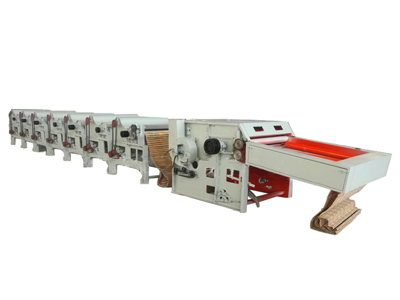 由兩個(gè)表面裝有角釘和針齒的機(jī)件相對(duì)運(yùn)動(dòng),對(duì)原料中的纖維塊進(jìn)行撕扯、松解。棉箱給棉機(jī)中的扯松部分。圖中角釘簾由裝有角釘?shù)哪景暨B接而成。纖維塊隨角釘簾向上運(yùn)動(dòng),與帶有角釘?shù)膱A筒形均棉羅拉相遇。由于角釘簾和均棉羅拉間隔開的距離很小,纖維塊受到角釘抓取并撕扯而獲得松解。此時(shí)一部分扯松的纖維原料隨角釘簾輸出機(jī)外,另一部分則被均棉羅拉所擊落,然后再由角釘簾帶回二者之間,進(jìn)行反復(fù)扯松。在扯松過程中,纖維相互間發(fā)生一定的位移,纖維塊的密度降低,纖維與雜質(zhì)間的聯(lián)系減弱,一些粘附性小的雜質(zhì)被分離開。