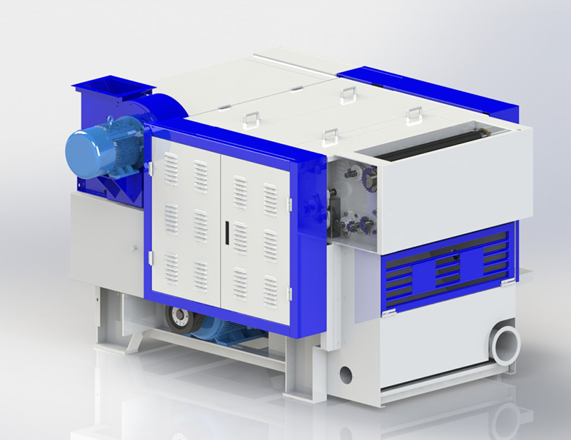 主要是松解纖維、棉、紡織品等材質(zhì),通過撕扯使大塊的糾結(jié)纖維松解變成小塊或束狀,同時在松解過程中伴有混和、除雜作用。開松機一般是由一對喂入輥或喂入羅拉及一個開松錫林組成,開松錫林上裝有角釘或梳針或針布或豪豬打手,為開松更完全,有的還在錫林上裝有工作輥及剝?nèi)≥?。不同的結(jié)構(gòu)使其開松效果、混合效果、除雜效果有明顯的差異,因此在不同要求的生產(chǎn)線上應(yīng)采用不同形式的開松機。也可根據(jù)加工的原料選用開松機,開松后的纖維再喂入梳理機進行加工。